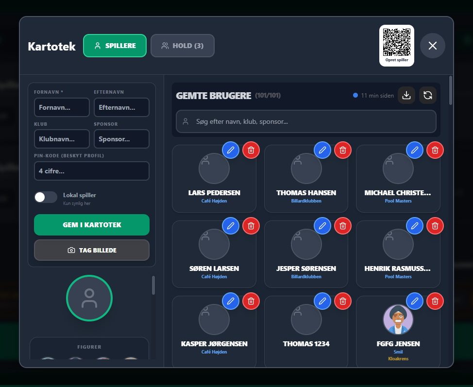 Online Admin version som muliggør at oprette spillere i kartotek fra en mobil telefon eller Computer.